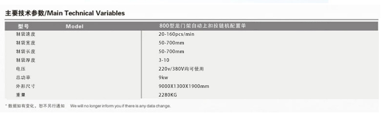 800型龍門架自動上扣拉鏈機
